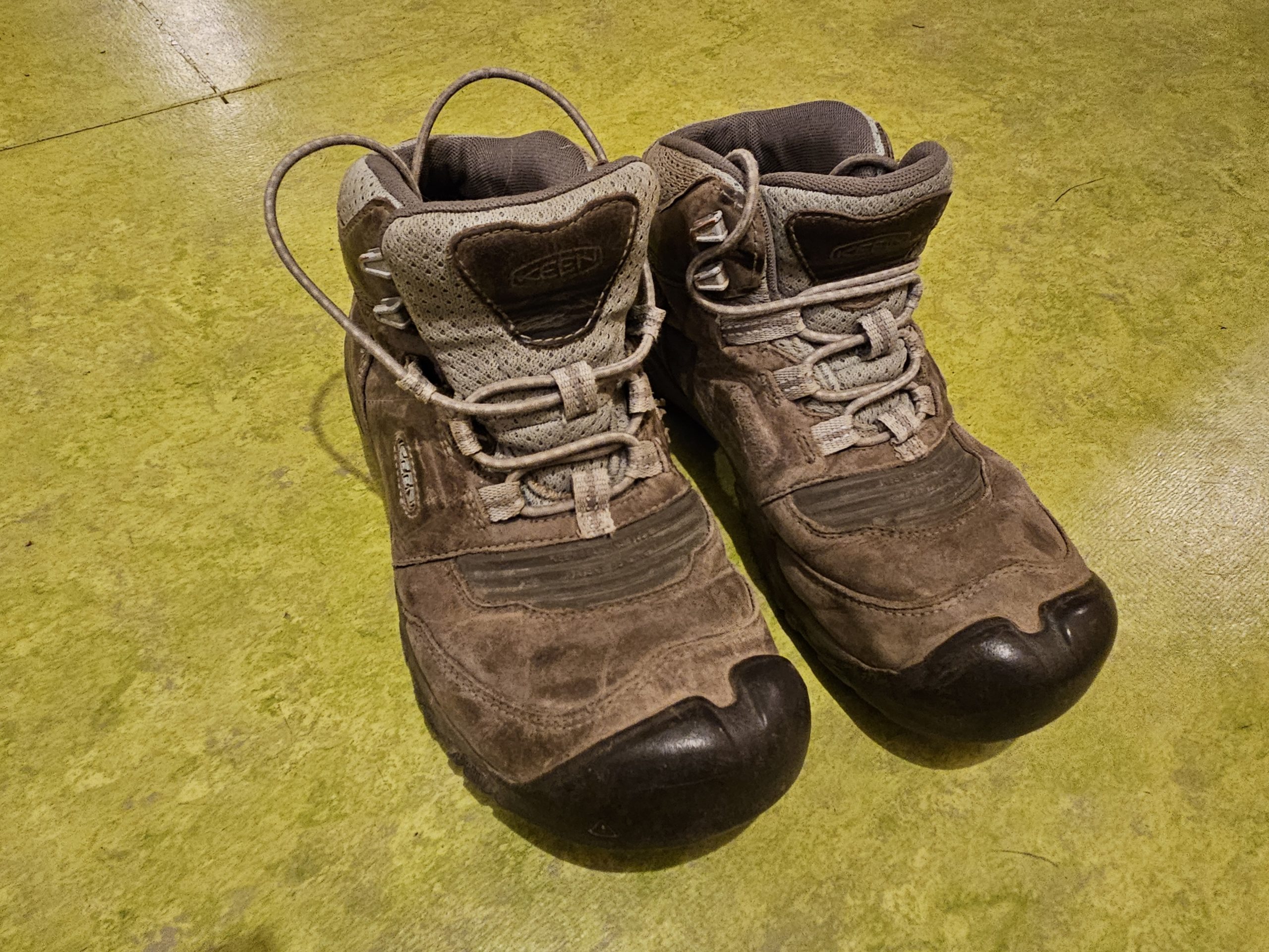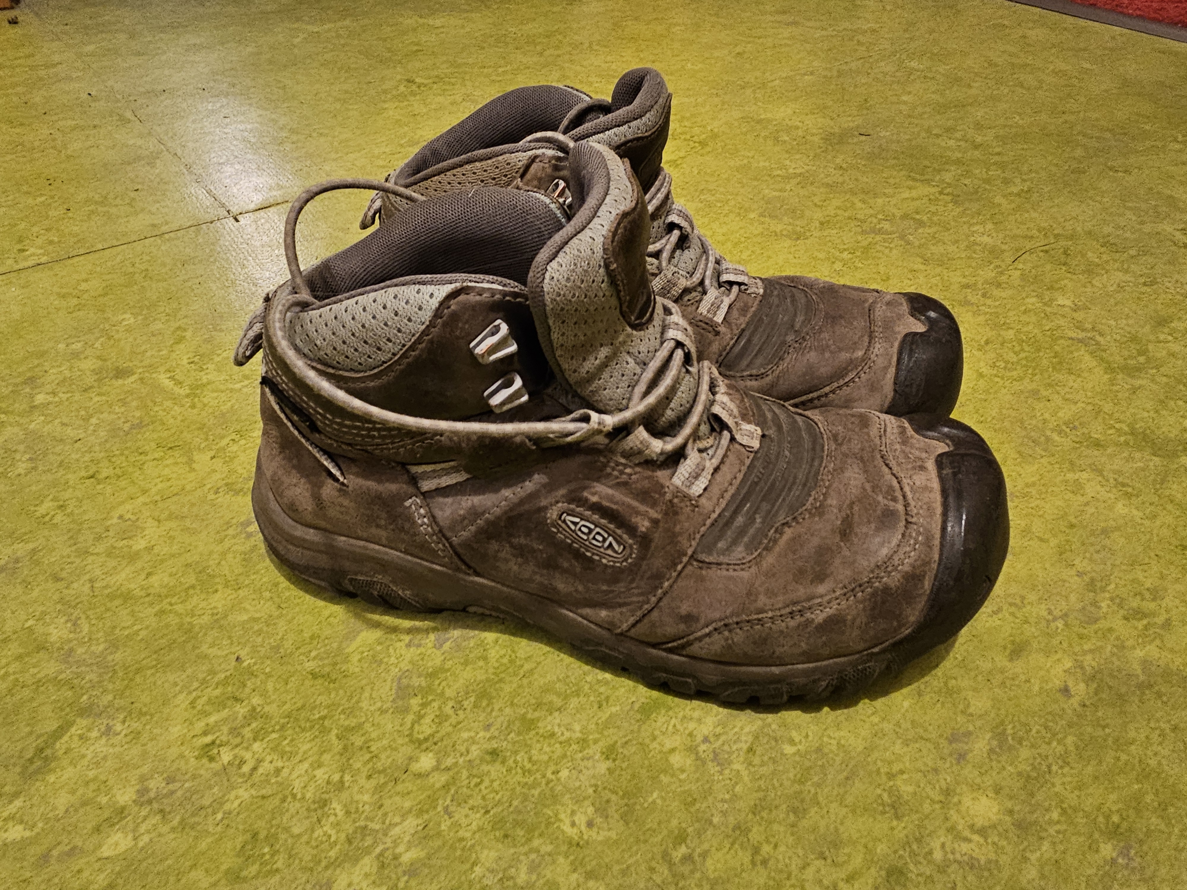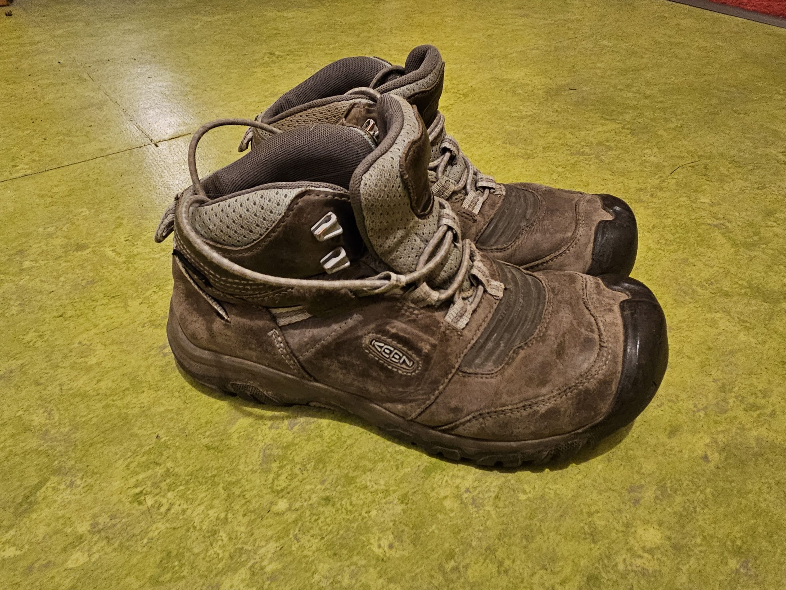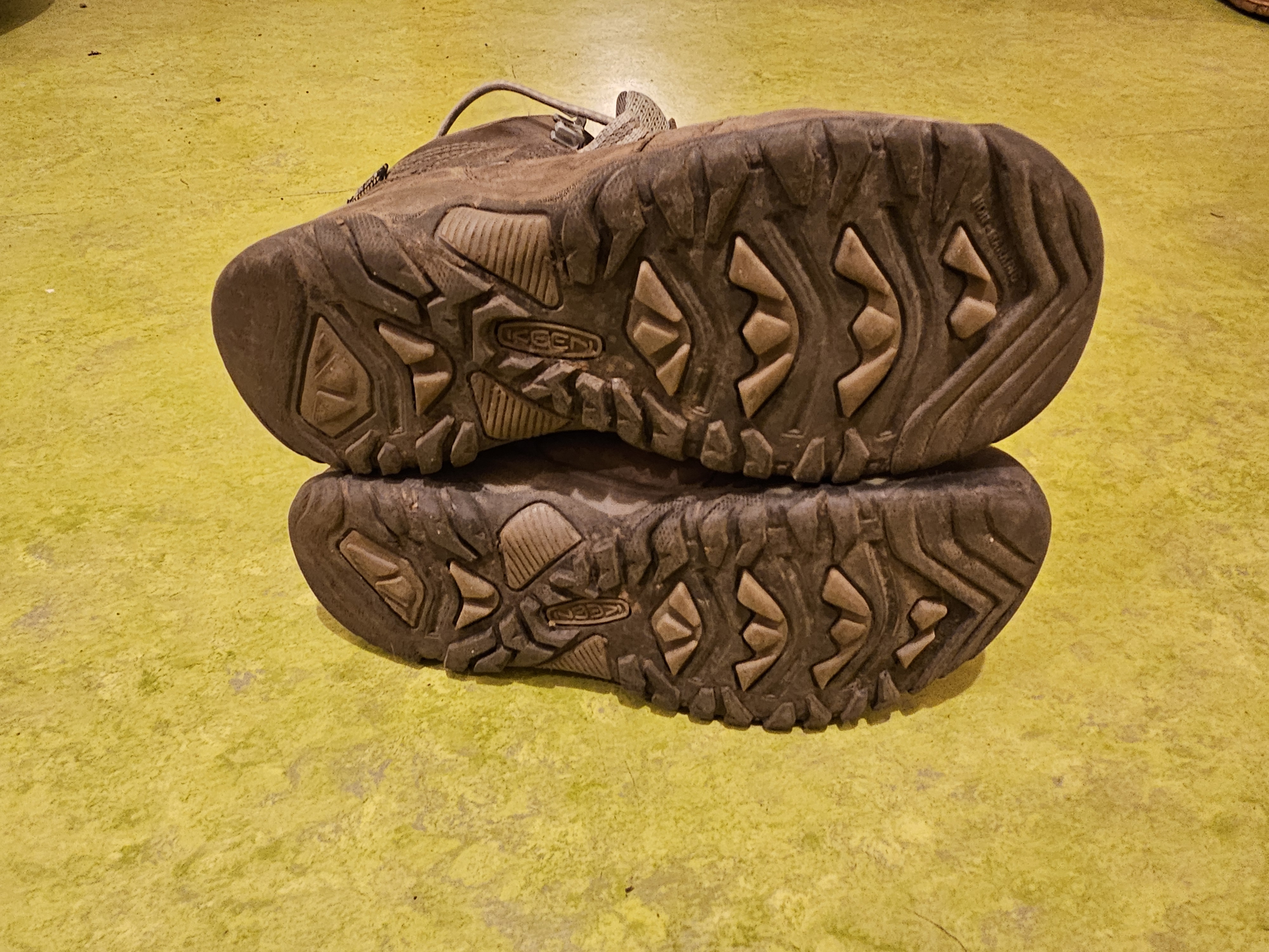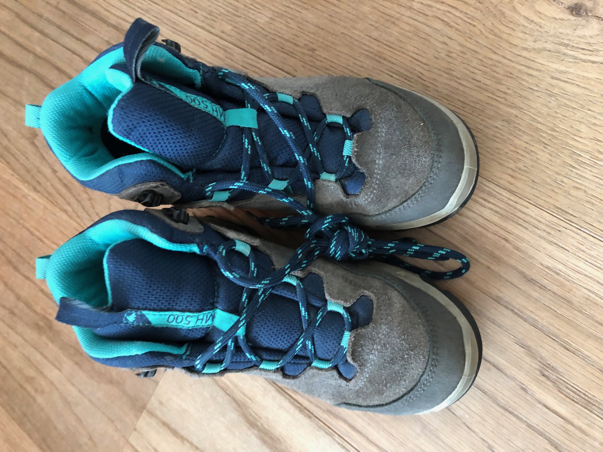 Délka 22,5 cm. Nošené 2 sezóny pouze na výpravy a na táboře, trochu nižší model s gumovou vložkou pro lepší ohebnost boty ve špičce (už není na trhu).